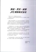 JFE钢铁株式会社,JFE Steel Corporation,生产产品、事业领域:钢铁产品及半成品(热轧薄板、冷轧薄板、表面处理钢板、厚板、型钢、工字钢、钢板桩、轨道钢、无缝钢管、锻造钢管、电阻焊钢管、方形钢管、电弧焊钢管、电磁钢板、不锈钢板、棒钢、线材、铁粉、炉渣)、钛钢产品、钢材加工产品、化工产品、型材产品、各种容器类、矿业及矿产品、钢铁炉渣产品、功能材料、合金铁、各种耐火材料、筑炉施工、各种运输事业、仓储业、土木建筑施工、设备管理及建设施工、电气施工、电气通信施工、火力发电、燃气、建设临时设施材料、房地产、保险代理业、各种服务业、各种计算机系统、材料分析和解析、环境调查、技术信息调查、知识产权支援等