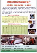 洛阳市郊区龙凤玻璃纤维厂,是集生产、销售玻璃纤维制品为一体的生产型企业。主要产品有:中碱玻璃纤维布、无碱玻璃纤维布、耐碱玻璃纤维制品、玻璃纤维防火布、玻璃纤维绝缘布(管)、玻璃纤维铝箔布、玻璃纤维土工格栅、玻璃纤维短切纱等。是铸造、电子、化工、造船,建筑、玻璃钢、公路、冶炼、石油管道等领域的重要基础材料,并广泛应用于:保温、防水、绝缘、防腐管道包装及建筑材料。本厂生产设备齐全,制作工艺先进,产品质量一流,销往国内外,享有盛名。自1996年成立以来,创造了11年的良好信誉,11年的质量保证。愿以优质的服务来满足用户的需求,以实现我们的宗旨:以诚相待,互惠互利,共同发展,为您服务。经理王育辉先生,竭诚欢迎国内外的客商光顾洛阳,前来进行经济技术合作,商务洽谈,旅行观光。并衷心希望与更多的海内外客户成为永久性战略合作伙伴关系。